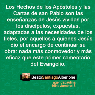 Hoy, todas las ciudades del mundo donde está presente la F.P, han celebrado con gozo la memoria de nuestro Padre Fundador, el Beato Santiago Alberione. Todos unidos en un sentir común, y en el deseo de caminar siguiendo el deseo de nuestro Beato: "que fuésemos santos". Es mucho el camino aún por recorrer para que podamos llegar a serlo, muchas nuestras debilidades, pero también existe en nosotros el deseo de caminar tratando de mejor servir a Dios y a su Iglesia, como la sirvió el P. Alberione. No arrojamos la toalla y pedimos que él siga cuidando de todos nosotros y despertándonos de nuestros letargos, para que no nos desviemos de la misión que se nos ha encomendado: evangelizar a través de los medios de comunicación social; las diez ramas de ese frondoso árbol que es la Familia que él fundó, seguirá en el empeño de dar los frutos que estamos llamados a dar, siendo estímulo y ayuda mutua para tal fin.